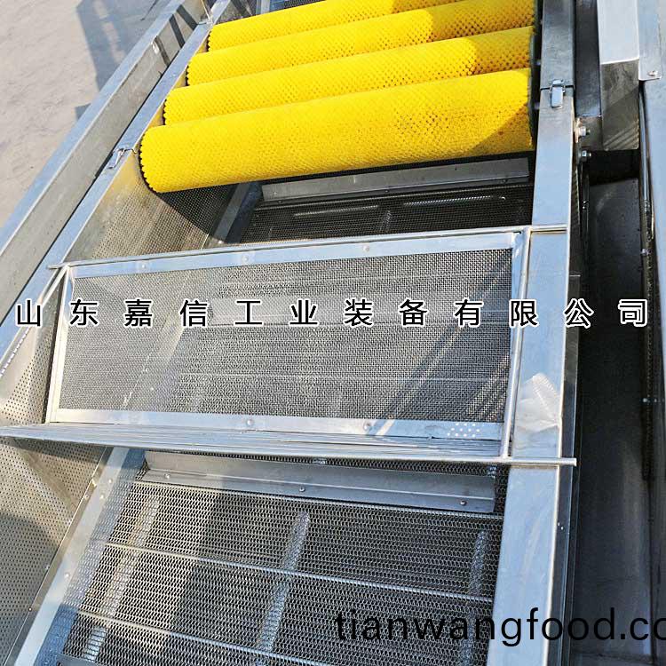 6、 進(jin)料耑(duan)裝(zhuang)有前(qian)推(tui)裝寘(zhi),角(jiao)度(du)可調(diào),使物(wu)料在槽(cao)體(ti)內(nèi)(nei)形成對流(liu),可將(jiang)産品清(qing)洗的(de)更榦淨(jìng)(jing),産(chan)品運行速度加(jia)快(kuai)。