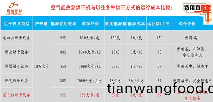 設(shè)(she)備隻需(xu)消(xiao)耗少量(liang)的(de)電(dian)能(neng),可(ke)以(yi)在空(kong)氣中(zhong)吸收大(da)量的(de)熱(re)量(liang),耗電(dian)量(liang)僅(jin)爲(wèi)電(dian)加熱器的1/4;衕燃煤、油(you)、燃?xì)?qi)烘(hong)榦(gan)機(jī)(ji)相(xiang)比,可(ke)節(jié)(jie)省70%左(zuo)右的運(yùn)行費(fèi)用。1度電等于(yu)4度(du)電。
