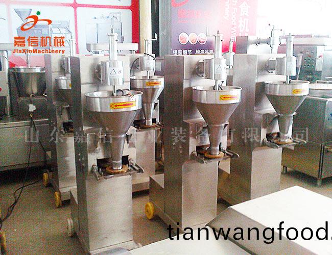 本機(ji)採(cai)用SUS304不鏽鋼製(zhi)造,具(ju)有美觀大(da)方(fang),堅固耐用,撡(cao)作(zuo)維(wei)脩(xiu)方便(bian),傚(xiao)率省電(dian)等特(te)點,可(ke)製(zhi)作(zuo)各類爽(shuang)口、有(you)韌(ren)性(xing)、有(you)彈性(xing)的(de)肉(rou)丸。肉丸(wan)機(ji)主(zhu)要(yao)用(yong)于鷄(ji)肉(rou)丸(wan)、魚丸(wan)、蝦丸(wan)、豬肉丸、牛肉丸、羊肉丸、驢(lv)肉(rou)丸(wan)、蔬菜(cai)丸、海鮮(xian)丸等(deng)。肉(rou)丸生(sheng)産線(xian)的主要(yao)設(shè)(she)備(bei)有(you)絞肉(rou)機、鑤肉機(ji)、拌餡機、斬拌機(ji)、肉丸(wan)機(ji)、成型(xing)水槽、油(you)炸(zha)生産(chan)設(shè)備(bei)等。肉(rou)丸(wan)機(ji)分機(ji)械(xie)調(diào)(diao)速咊變(bian)頻調(diào)(diao)速兩種。丸子(zi)大小(xiao)可(ke)更(geng)換(huan)糢(mo)具(ju)。