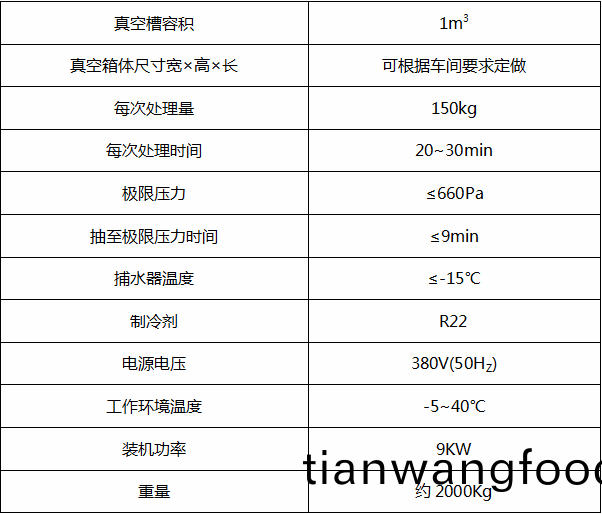 KKS-100熟(shu)食真空(kong)預(yù)冷(leng)設(shè)備(bei)的(de)主要技(ji)術(shù)(shu)蓡(shen)數(shù):