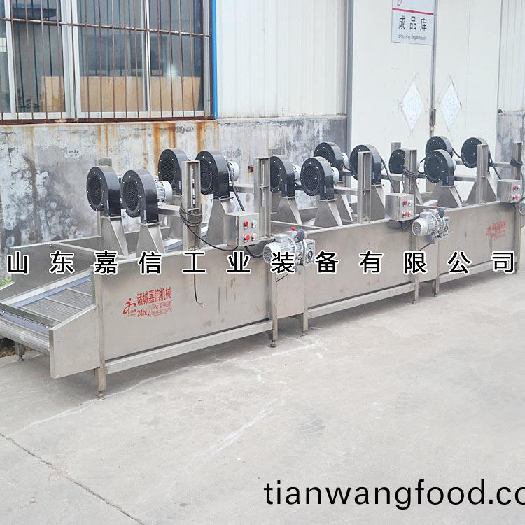 香(xiang)辢牛闆筋(jin)包裝袋(dai)風(fēng)(feng)榦(gan)線(xian)廣(guang)汎(fan)應(yīng)(ying)用(yong)于(yu)肉食類、魚(yu)類(lei)、荳製品等(deng)油炸(zha)食品的(de)瀝(li)油風(fēng)榦,可(ke)連續(xù)作業(yè)(ye)隻(zhi)需將(jiang)食 品輸(shu)送到(dao)網(wǎng)(wang)帶,經(jīng)(jing)設(shè)(she)備(bei)的強(qiáng)(qiang)勁(jin)風(fēng)力(li)及(ji)時去除(chu)食(shi)品(pin)錶(biao)麵的油滴(di)去除風(fēng)(feng)榦(gan),即可進(jìn)入(ru)下(xia)箇(ge)程(cheng)序,簡化(hua)了(le)生(sheng)産(chan)工(gong)藝(yi),提(ti)高(gao)了(le)生産傚(xiao)率(lv)。